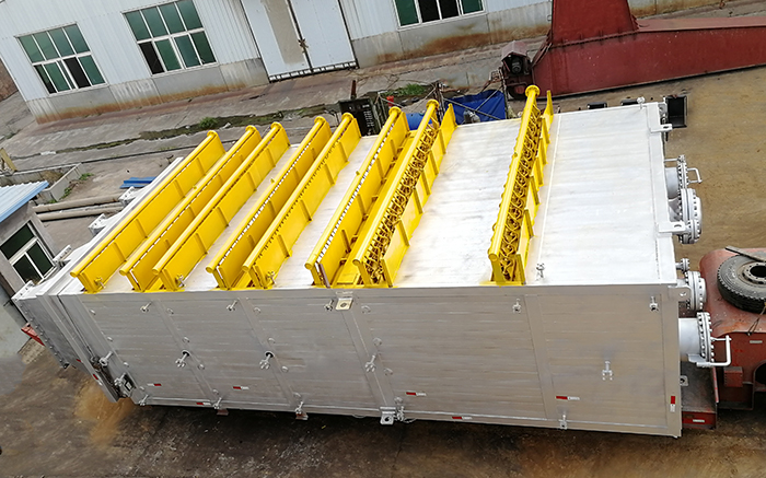 2】、降溫幅度最大【進(jìn)料溫度約750℃,出料溫度約150℃,冷卻物料溫差約600℃】、設(shè)備重量最重【設(shè)備凈重約70噸,運(yùn)行重量約160噸】、設(shè)備體積最大【長(zhǎng)×寬×高≈4.8米×2.8米×11米】的立式水循環(huán)冷卻設(shè)備。